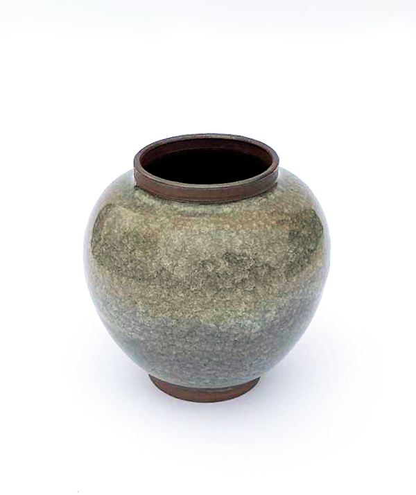 Vedeldad kruka i stengods med kristallglasyr "Snow flakes"
